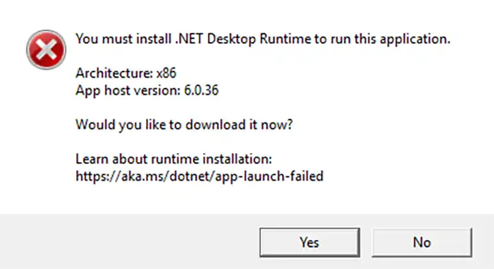 برای برطرف کردنش هم تنها کافیه همون پیامی که دریافت میکنی رو گوگل کنی و اون پکیجهای .NET رو متناسب با نوع و نسخه ویندوز خودت، دانلود و نصب کنی
