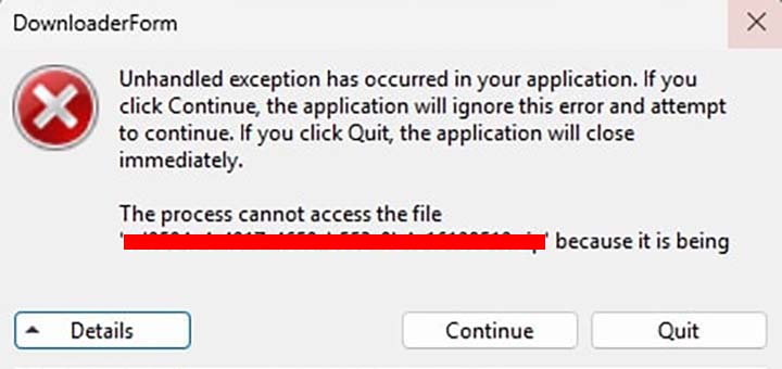 2-5- بعد از اجرا نرمافزار donwloader و ارسال توکن، در حین انجام مرحل نصب، مطابق با عکس زیر، با خطا The Process cannot access the fiile 'XXXXX' becouse it is being مواجه مواجه میشم، چه کار کنم؟